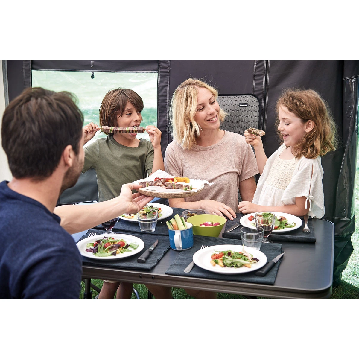 La table de camping Premium est facile à transporter car ultra plate une fois pliée, seulement 5 cm.