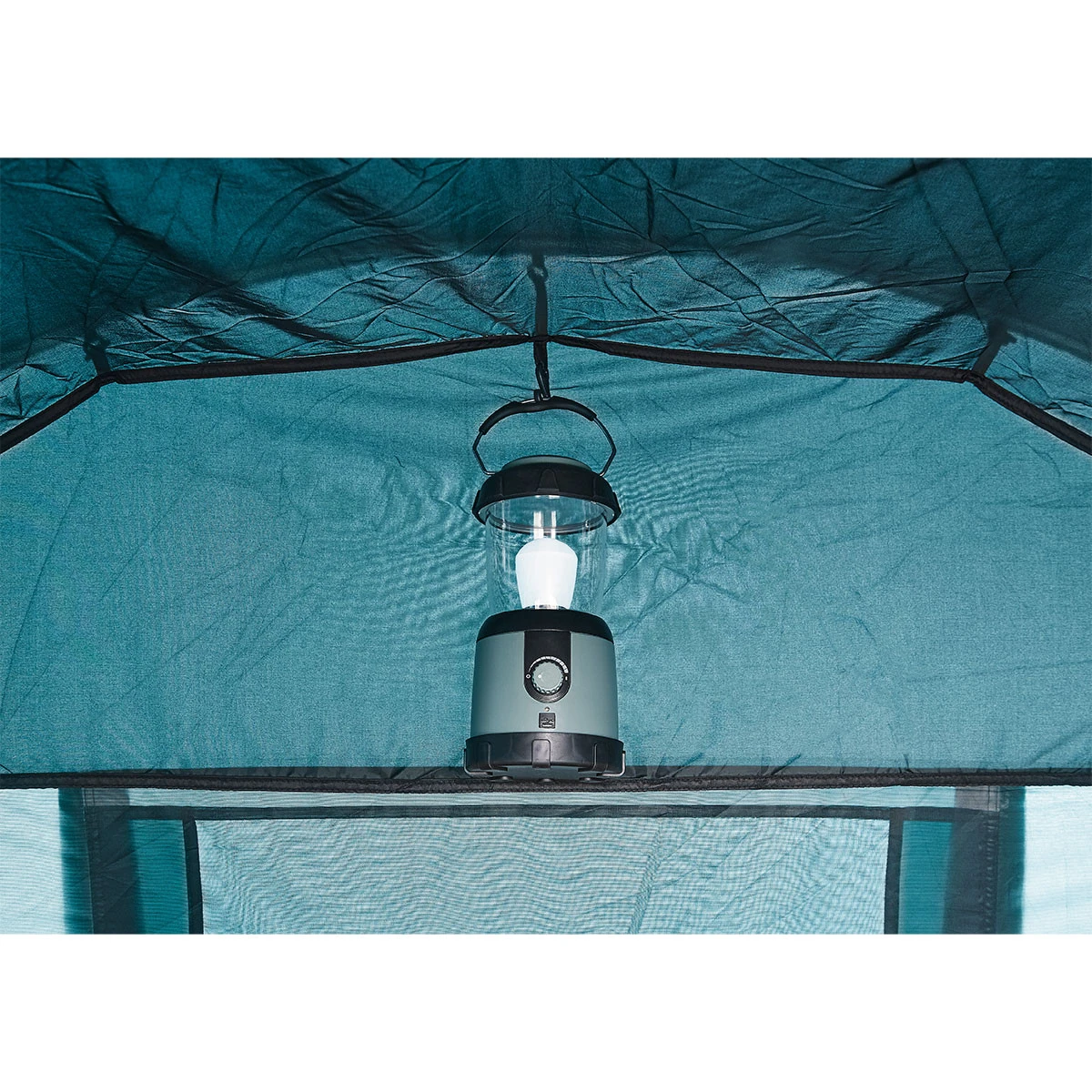 La chambre intérieure, complètement indépendante, peut se retirer pour laisser place à un grand espace entièrement recouvert par le tapis de sol. La Bilbao 2 est conçue pour pouvoir s’installer dans la tente en cas de mauvais temps. Vous aurez ainsi l’espace nécessaire pour installer une petite table et deux fauteuils de camping à côté de la chambre.