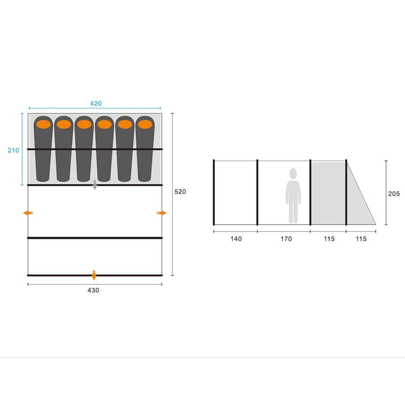 La Bilbao 6 est composée d’une entrée principale et de 2 entrées latérales, vous permettant une circulation facile à l’intérieur de la tente et une aération optimale. Une grande aération est également présente au niveau du toit. La luminosité est au rendez-vous dans le séjour grâce à ses portes et ses 2 fenêtres.